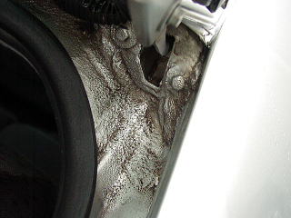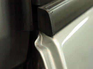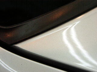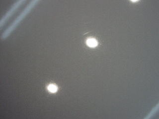 映り込んだ丸いライトがもやもやっとしています