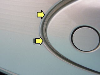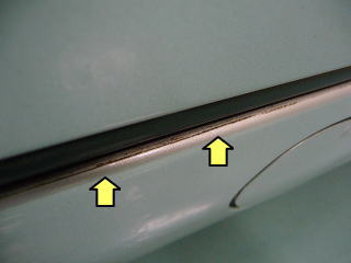 ![]() ドアエッジのフィルムすき間に入り込んだ汚れ |