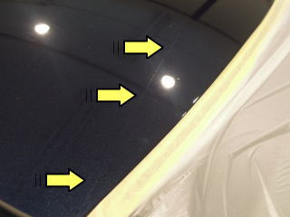 ![]() ルーフ先端に残った保護フィルムを剥がした後の糊あと |