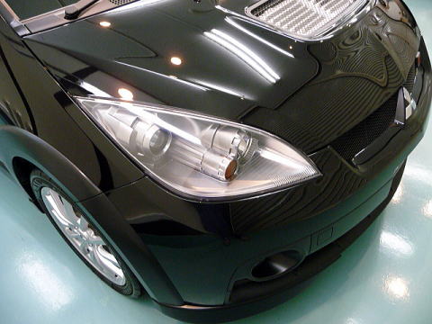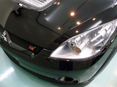 塗装は、細かなマイカが入ったブラックで一見、ソリッドブラックにも見えます ブラックですと、トヨタのカラーNO.202のソリッドブラックが非常にデリケートなことで有名ですが このブラックマイカはそれ以上にデリケートで、触れば触っただけ傷が入ってしまうというタイプ スバルやホンダの黒、紫系もそうですが、非常に柔らかいマイカタイプは最近増えてます |