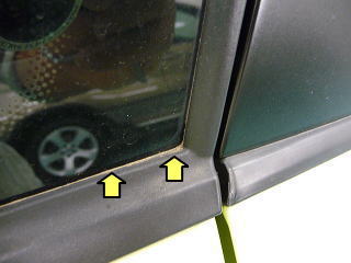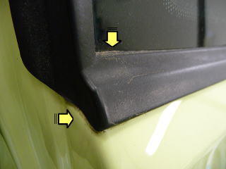 ![]() 窓枠ゴムモールまわりの汚れ |
