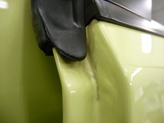 ![]() Cピラーの洗車傷 洗車傷は全体的にこの程度付いています |