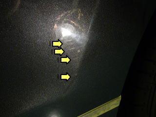 ![]() オーナーさまが気にされていた 左リアフェンダーのポール引っかけ傷 |