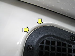 ![]() ルーフ前端左角 右側と同様の状態 |
