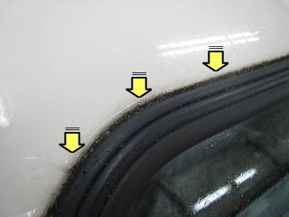 ![]() ルーフサイドの小窓の周りの汚れ |