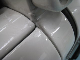 ![]() 亀裂に注意しながら水あかによる黒ずみを取り除いてます |