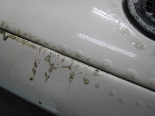 ![]() ルーフの雨どい下の水あか |
