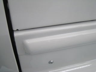 磨きに入る前に、、 白いお車なので特に目立ってしまうのですが、全体的に水あかやすき間の汚れが気になります パネルとパネルのすき間、ヒンジや雨どいなどの凹凸のある部分の周りは特に黒ずんでいます また、ドアなどの平面部は上から下へとすだれの様に黒い筋となって残っています 先ずは、こういった細かな部分、バフの入らない場所の汚れを手作業で地道に取り除いていきましょう! |