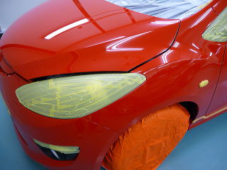 施工後は、目にも眩しいトゥルー・レッドがより一層弾けた赤になるとともに、全体のボリューム感が増したように感じます 限られたサイズの中で、この躍動感溢れるスタイルは近年のマツダ車の中でも傑作中の傑作かもしれません 小気味良いマニュアルシフトを駆ってのドライブは、さぞや爽快のことと思います 若きオーナーさまの友としてどうか長く大切になさってくださいませ ご利用誠にありがとうございました |