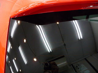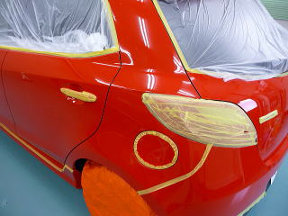 先ずは、洗車後に各部をしっかりとマスキング 先日の黄砂の影響か、ボンネットとルーフにはすでに若干の染みが見られます それらを中心に全体の下地加工を進めていきます |