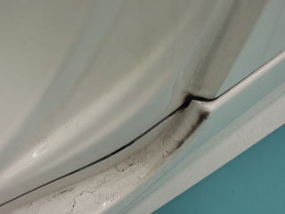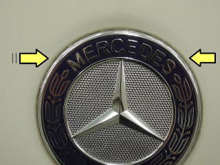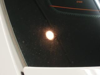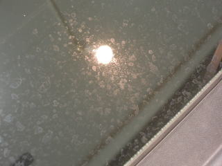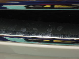 ![]() ボンネット先端のエンブレムまわりの水あか |