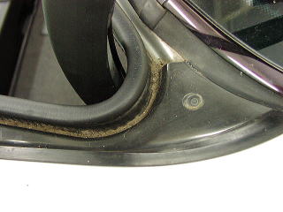 トランク開口部分に堆積した砂、土