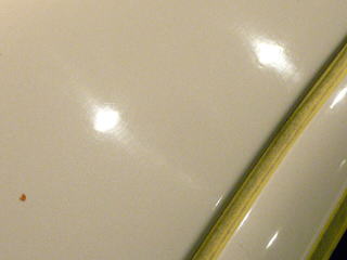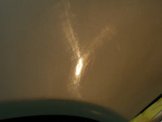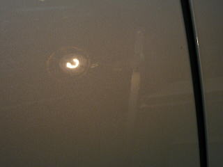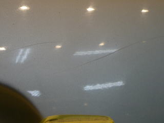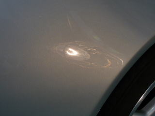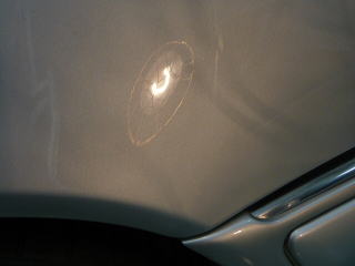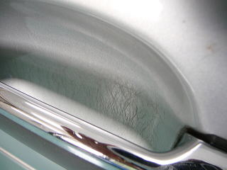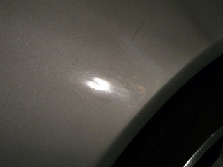 ![]() 給油口 汚れだけでなく、こぼれたガソリンで変色しています また、給油口下のボディ面も変色、脱色しています |