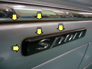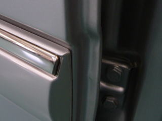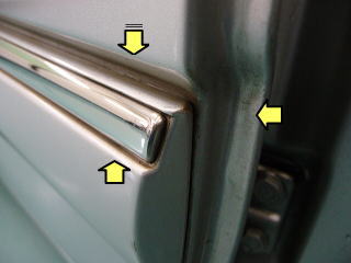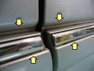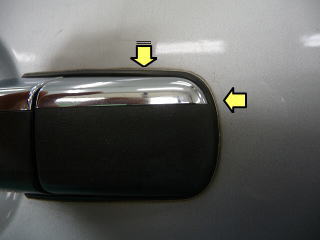 ![]() ドアステップ部のスカッフプレート 時間とともに汚れで黒ずんできます |
