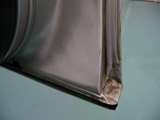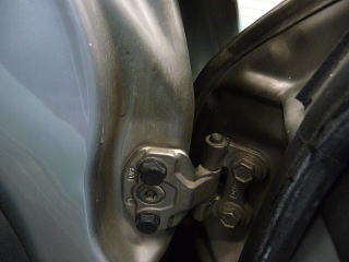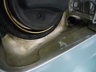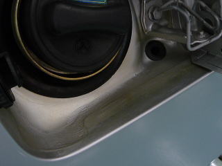 ![]() 給油口下 垂れたガソリンが放置された様子で変色、 一部脱色しています |