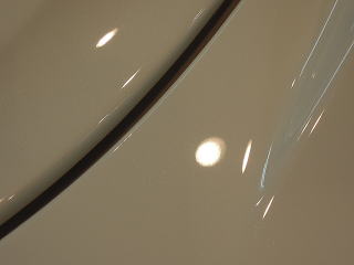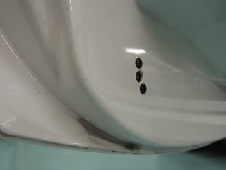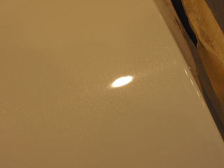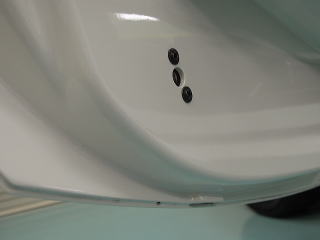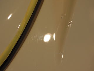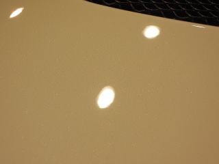 ![]() FRP製ボンネットには何ヶ所かに塗装の粗い部分が存在 中央のライトの周辺がポツポツとしているのが お分かりになりますでしょうか? |