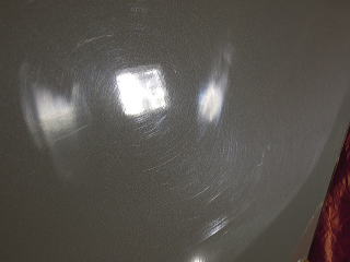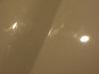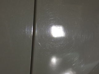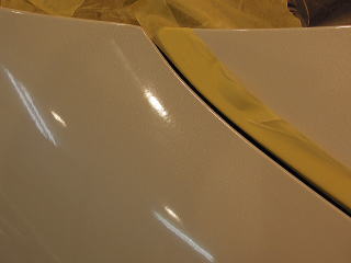 ![]() ひと通りの汚れ落とし終了後、再度洗車、乾燥 次にマスキングして下地磨きの開始です 塗装の状態ですが、洗車機による洗車傷?に水あかが付着し、 その上から水WAXかスタンドの簡易コーティングの様なものがのり、汚れも一緒に取り込んでしまっているように見えます 残念ながらパールホワイトが持っていたであろう本来のしっとりとした水みずしさが失われています 陶器のような艶よ再びっ! |