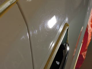 ![]() フロントフェンダー上部 バサバサっとした感じでツヤ感に乏しいです |