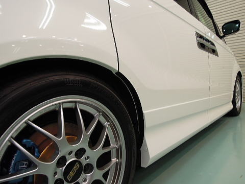 やや重い洗車傷と水あかを抱き込んでしまったために一見、 水みずしさの後退したソリッドホワイトのようになってしまっていた塗装も完全復活! 心機一転、とろけるようなパールホワイトの美しさを再び味わっていただけるものと思います タイヤも新品に換装、ホイールも別タイプを発注済とこれからもまだまだ楽しみは尽きませんね! ご利用誠にありがとうございます |