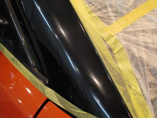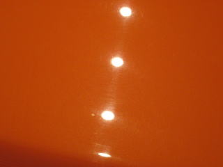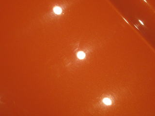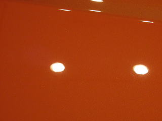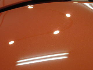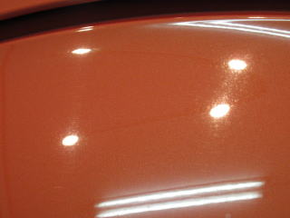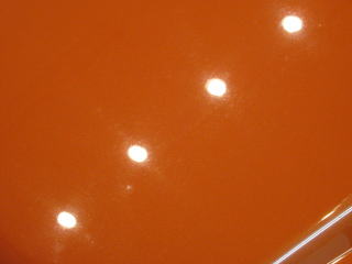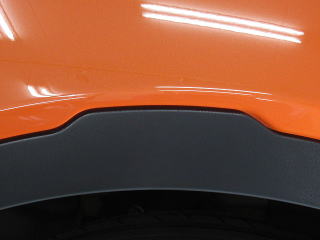 下地磨き完了いたしました! スポーティーなデザインによく似合う「フェニックスオレンジ」です! この後、、徹底した水切り&乾燥、 室内温度20度以上でのボディコーティング、 無地黒樹脂コーティング、室内清掃、細部処理と続きます ボディコーティング剤には これ以上のコート剤はない!新製品の最上級G’ZOX「ハイモースコート」 THE GLOWをご選択いただきました 最強の艶、防汚効果、耐久性で洗車拭き取りもラクラク、 軽い磨きでは落ちないほどの強靭で硬い被膜がボディを守り抜きます 少々お高いですがその価格も納得の超高性能! この性能を一度体感してしまうと病みつきになること間違いナシ!! ドアやサイドステップ室内側、ヘッドライト周りやフロントグリル周りなど入り組んだ凹凸部、 ナンバープレート、エンブレム内の細かな部分もしっかりコーティングしております 特に最近のお車は側面からの衝突安全性確保のためか ドアやボディ断面、サイドステップ室内側の幅、面積が広く厚くなっていますので この辺りもコーティングで保護しておけば汚れも付きにくく安心です! (主に新車、それに準ずるお車でかつコーティング剤に余裕のある場合のみとなります) |