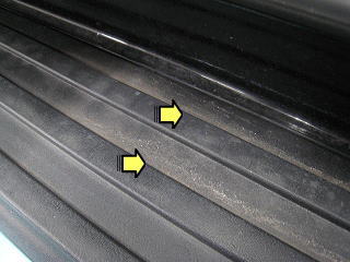 ![]() ドアを開けると現れるステップ後端の汚れ |