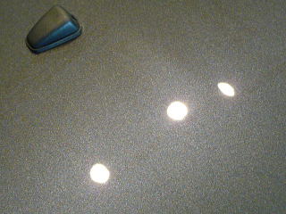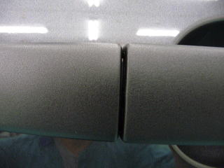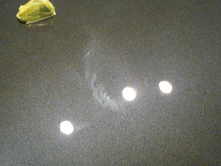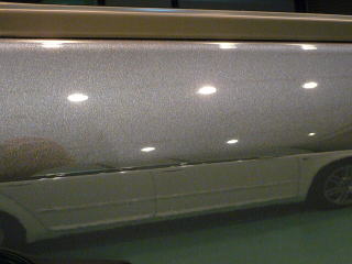 オーナーさまよりのご依頼は、「納車時にディーラーにて磨いているのでこれ以上あまり磨かないで欲しい」とのこと 洗車後に塗装の状態を拝見させていただきますと、軽いオーロラ状のバフ目が数ヶ所見受けられましたので これらのバフ目が消える程度にごく軽く磨かせていただきます しかし、塗装の厚みが減るようなことは一切ございませんのでご安心くださいませ |
