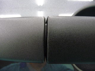 ![]() 右半分がコーティング施工済み部分 新車ですのでまだ傷みはありませんが それでもより黒い半艶となり締まって見えます |