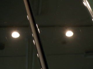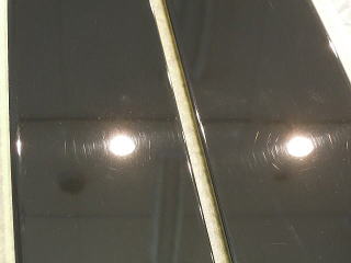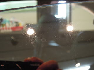 ![]() 窓ガラスはサンバイザーで隠れていた部分に雨じみが付着 |