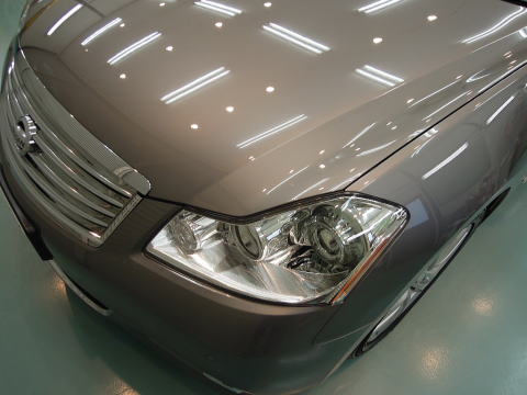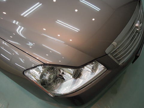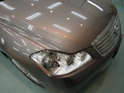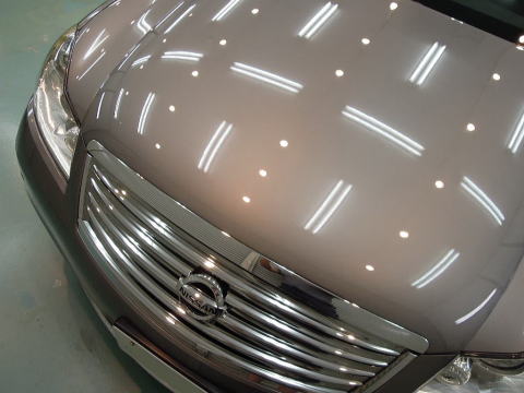 下地磨き完了です! 細かな雨染みもスッキリ、さっぱり除去 この後、、再洗車、徹底した水切り&乾燥、 室内温度20度以上でのボディコーティング、 窓ガラス下地磨き&超耐久撥水加工、室内清掃、細部処理と続きます コーティング剤は、ニッサン最上級車にふさわしいG’ZOX「ハイモースコート」です 下地作り・磨きについて コーティング剤と施工環境について |