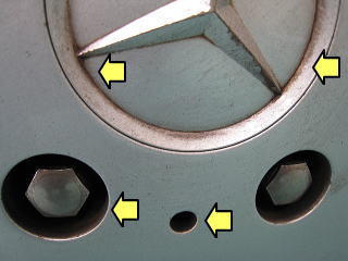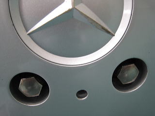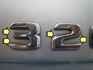 ![]() エンブレムのすき間の汚れ |