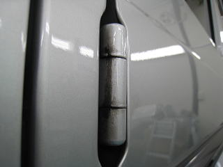 ![]() ドアヒンジの油汚れ |