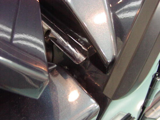 フェンダー上のPランプとボンネットにはさまれた部分