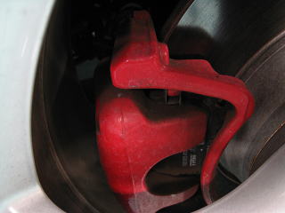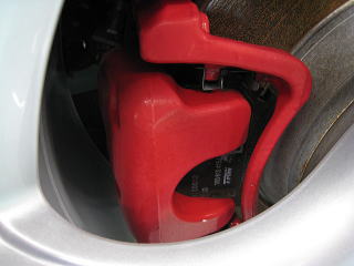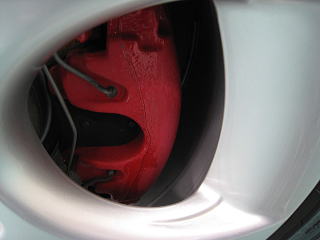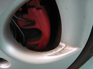 ![]() せっかくの赤キャリパーにも油汚れがまとわり付いてます |