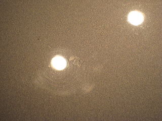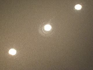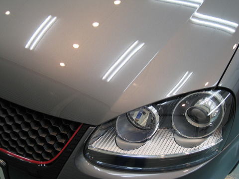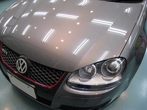 ![]() ボンネット 雨染みと磨き痕 (白熱灯のみで撮影のため茶系になってます) |
