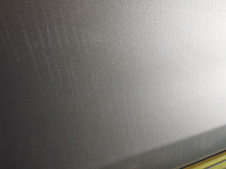 ![]() ドアサイド 光に透かして見ると上下方向に流れた染みが確認できます |