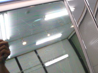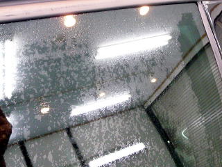 ![]() 新車の窓ガラスでも油膜や汚れは付きもの ウロコ状の雨染みが付く前の撥水加工がベストです |