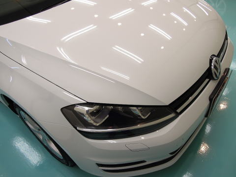 下地磨き完了いたしました! 真っ白、その名も「ピュアホワイト」! ゴルフでは意外に少ないように思う白ですが清潔感あふれてとてもお似合いです この後、、 室内温度20度以上でのボディコーティング、 窓ガラス下地磨き&撥水加工、ホイールコート、室内清掃、細部処理と続きます 下地作り・磨きについて コーティング剤と施工環境について |