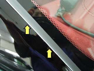 ![]() 右Aピラー ゴムの縁にコンパウンドがこびりついてます マスキングが甘かった? しなかった? |