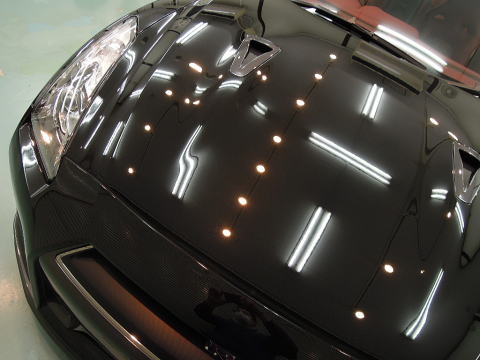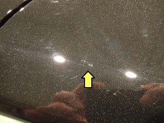 ![]() ボンネット うっすら白い筋のように何本も見えるのが バフ目(オーロラといわれる磨きキズ)です |