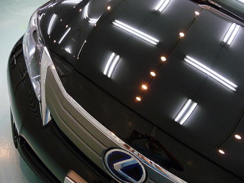 ほやほや新車ですが、コーティング剤の乗りを良くするために 軽い下地磨きを入れさせていただきます (この下地磨きによって膜厚を削るようなことは一切ございませんのでご安心を) ![]() 余談ですが、黄色のマスキングを施した顔はセダンとは思えないほど精悍ですね! この後、、再洗車、徹底した水切り&乾燥、 室内温度20度以上でのボディコーティング、ホイールコート、 窓ガラス雨染み除去&撥水加工、、室内清掃、細部処理と続きます ボディのコート剤は、最高峰の「ハイモースコート」をお選びいただきました この「ハイモースコート」、、、 世界一とも思えるレクサス車の美しい塗装をさらなる極みへと導く唯一のコート剤かもしれません!! 下地作り・磨きについて コーティング剤と施工環境について |