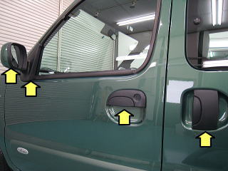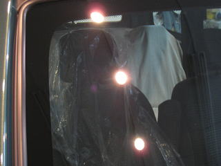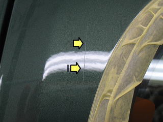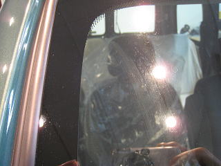 ![]() 右リアサイド窓 外側は軽い雨染みが付着 内側のもやもやして見えるのは手あかです |