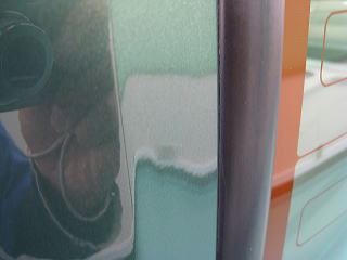 ![]() Fウィンドウ こちらも軽い雨染みが付着 内側には斜め上下に筋状に拭いたあとが残っています |