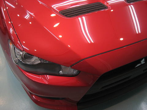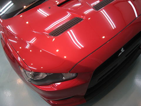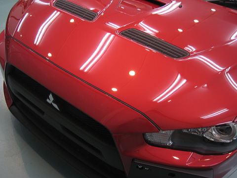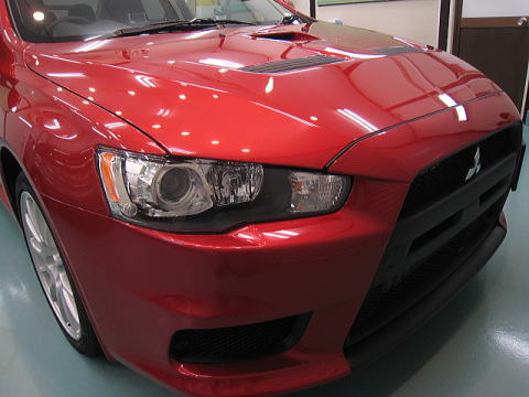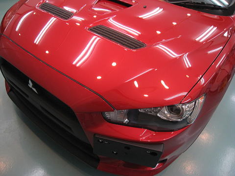 磨き完了! 上の画像ではいまひとつ変化に乏しく感じるかもしれませんが 実車を見ていただければ一目瞭然、間違いなく全体的なもやもや感が取れ一段と艶やかにスッキリしております この後、、再洗車、徹底した水切り&乾燥、 温度20度以上・湿度50%以下の室内環境でのボディコーティング、 窓ガラス撥水加工、ホイールコーティング、、室内清掃、細部処理と続きます もちろん、ナンバープレートなどもコーティング済みです 最新のコーティング剤は性能の向上が著しいものの、 その性能を充分に発揮させるためには施工時の施工環境が限定されます 当店では温度20度以上、かつ、湿度50%以下という施工環境の自主基準を厳守 季節や天候に左右されずコーティング剤の持つ最高のパフォーマンスを引き出します |