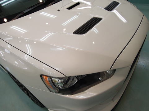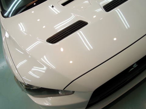 下地加工完了です 白のお車はより白く、清々しく!! この後、、再洗車、徹底した水切り&乾燥、 室内温度20度以上でのボディコーティング、 窓ガラス下地磨き&撥水加工、ホイールコート、室内清掃、細部処理と続きます ボディは、最強のG’ZOX「ハイモースコート」にてがっちりガードいたします! 下地作り・磨きについて コーティング剤と施工環境について |