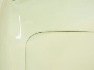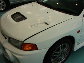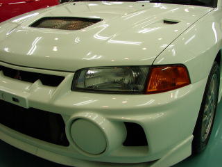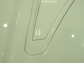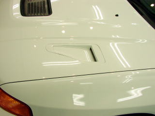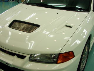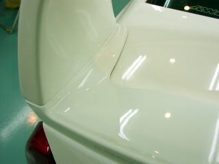 ’96式のランエボです。 車検切れで丸1年間露天に放置されていたと のこと。 ソリッドホワイトの塗装表面が完全に酸化して しまい艶が全くありません。 ←の画像では照明の写り込みがほとんどない のがお分かりになりますでしょうか。 まるでつや消し塗装のようです。 工場内の全ての照明を点けているのですが 痛々しいですね(-_-;) |
