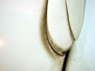 ![]() こびり付いた「きわ」の汚れは時間をかけ 手作業で丹念に取り除く以外ありません |