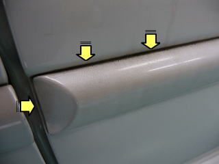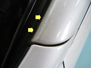 ![]() ドアミラー付け根 ゴムのすき間にたまった汚れ |