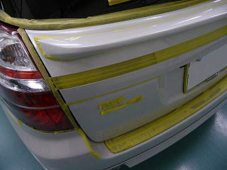 ![]() 入庫時の状態 ![]() 黒い雨すじで車全体が覆われてしまっています 洗車・鉄粉除去完了! ![]() このお車のリアまわりはマスキングが多く必要ですね |