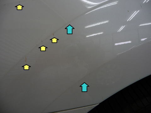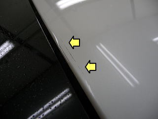 ![]() 飛び石傷保護シート周りの汚れ |