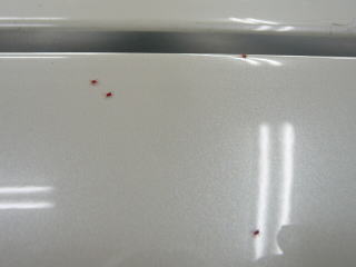 スバル レガシー ワゴンのガラスコーティング施工例 ガラスコーティング コーティング カーコーティング 東京 世田谷 狛江![]() Fフェンダーのラインとおりにシートカバーによる擦れ傷+汚れが付着(青矢印) 赤い小さな染み(黄矢印)がボディのいたる所に付着、、、はて?何だろうと思いきや、、、 ![]() ![]() 疑問はすぐに解決、、 無数の小さな(1〜2ミリ)クモ(たぶん)がいたるところに這い回ってます この赤いクモがボディカバーですれてつぶれて染みになりこびり付いているようです これを潰してしまうと真っ赤な染みとなり完全には取れなくなってしまう困り者 |